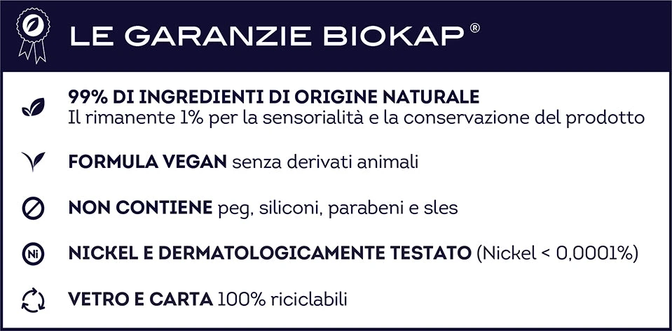 Le Garanzie BioKap®: Senza Peg, Senza Siliconi, Senza Parabeni, Nickel Tested, Dermatologicamente Testato