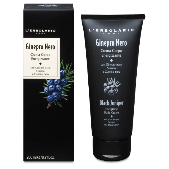 Estratto di Ginepro nero, acqua distillata di Ginepro nero, idrolizzato di Sesamo nero, oli di Cumino nero e di Girasole biologico, burri di Cacao e Cocco, vitamina E dai semi della Soja, insaponificabile dell’olio di Oliva, Carbone vegetale