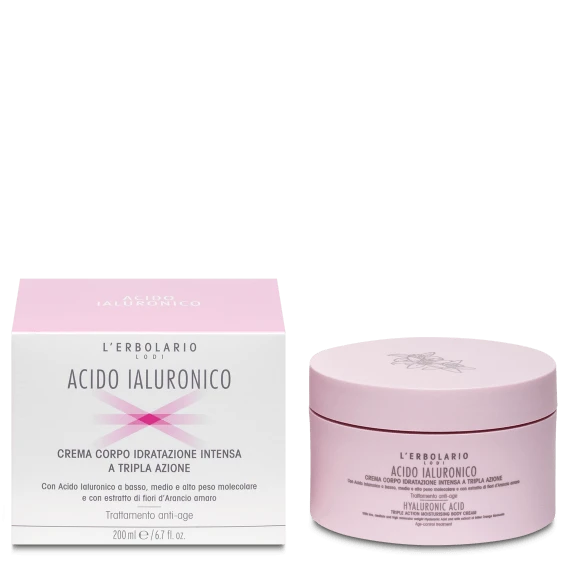 Anche la pelle del corpo si affida alle attenzioni antiossidanti e superidratanti dell’Acido Ialuronico a basso, medio e alto peso molecolare. Una molecola idrofila che, nel ridurre i processi evaporativi che impoveriscono l’idratazione dell’epidermide, favorisce la produzione fisiologica di Collagene.