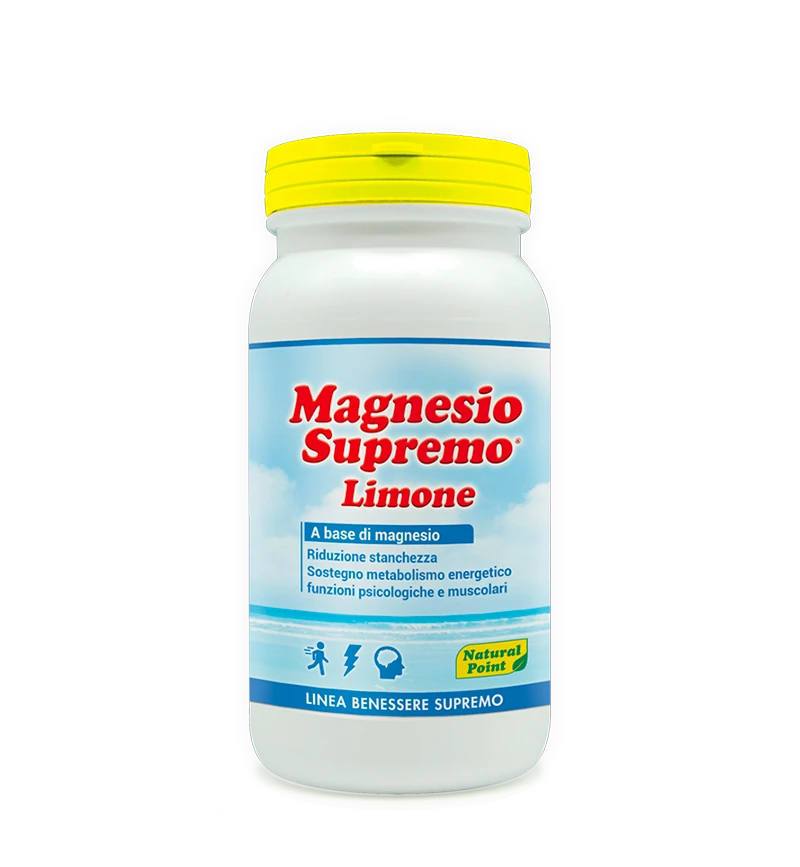 Magnesio Supremo, formula originale di Natural Point, è una miscela esclusiva sviluppata in una linea di produzione dedicata, costituita da acido citrico di origine vegetale e da magnesio carbonato di origine marina. La miscela in acqua si trasforma in una soluzione ad alto contenuto di magnesio citrato, sale organico altamente solubile col elevata velocità di assorbimento.