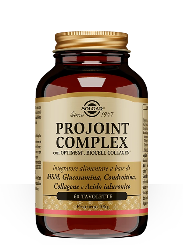 Integratore alimentare a base di MSM (metilsulfonilmetano)*, composto organico contenente Zolfo, in associazione a Glucosamina** e Condroitina, costituenti del tessuto cartilagineo articolare, e il brevetto Biocell Collagen®*** che fornisce Collagene idrolizzato tipo II, condroitin solfato e acido ialuronico, costituenti del tessuto cartilagineo articolare.