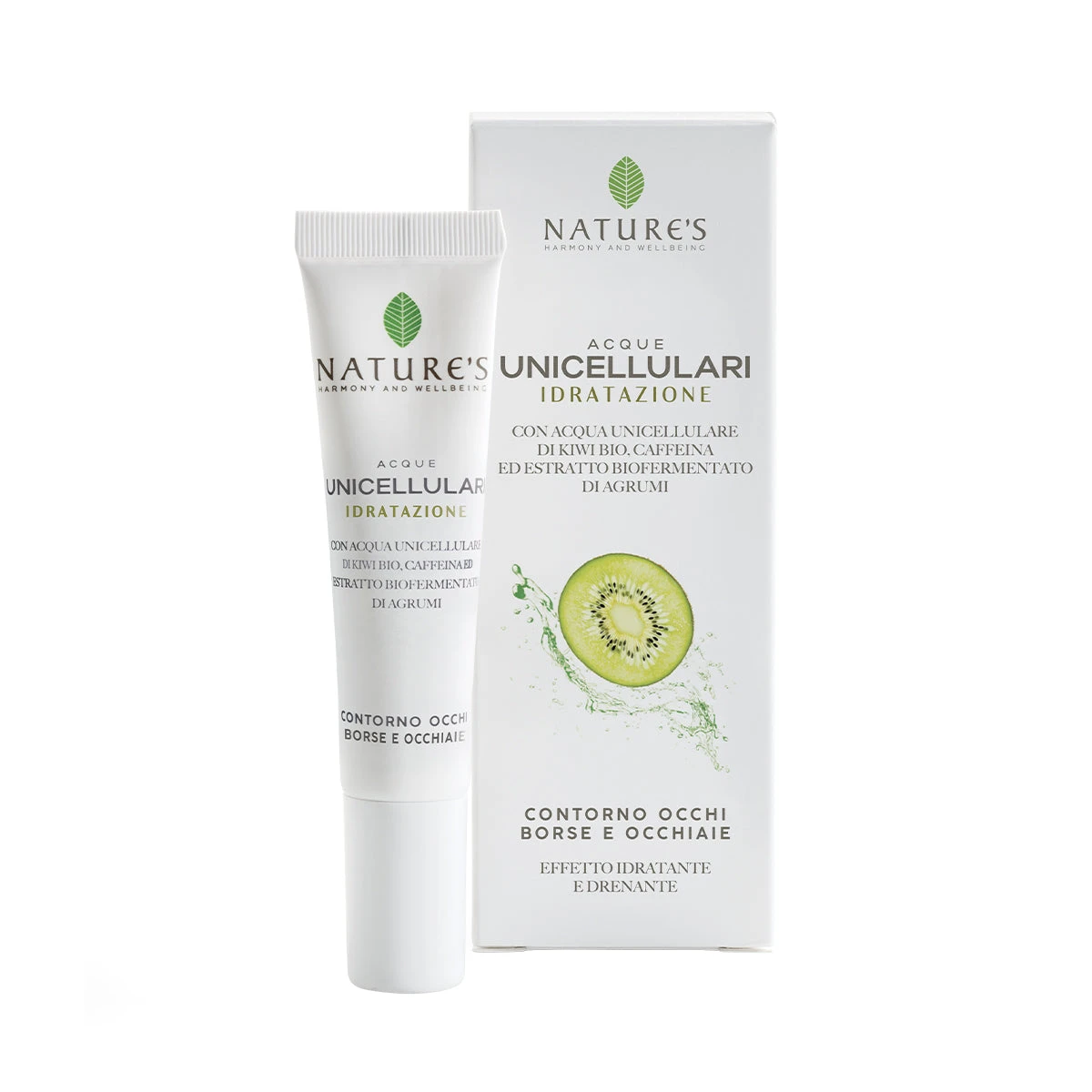 - Acqua Unicellulare di Kiwi bio e Acido Ialuronico, distendono le piccole rughe e restituiscono allo sguardo un aspetto più fresco
